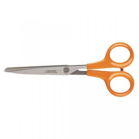 Víceúčelové nůžky Fiskars Classic pro praváky i leváky. Špičatá čepel a zaoblené ostří pro mnohostranné použití. Pro řezání lehkých materiálů.Univerzální kancelářské nůžky Fiskars Classic, 17 cm