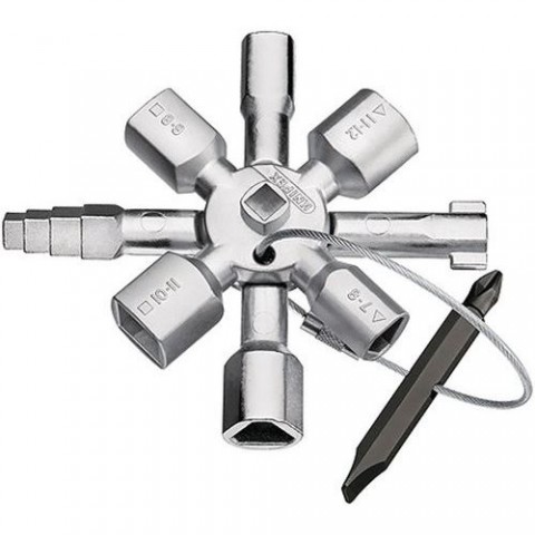 Kombinovaný univerzální klíč do skříně a univerzální zásahový klíč. Magnetický střed. Multifunkční klíč z litého zinku.Univerzální klíč na rozvodné skříně 2v1 Knipex