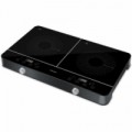 Ultratenký indukční vařič značky Sencor disponuje 2 varnými plotýnkami o průměru 26 cm, které jsou kompatibilní s nádobím o průměru 12 - 26 cm. Velký přehledný LCD displej s červeným podsvícením a dotyková tlačítka pro ovládání vařiče a jeho funkcí. Vše nastavíte pouhým pohybem prstu vpravo a vlevo. Možnost nastavení teploty v rozmezí od 60 do 240 °C a nastavíte si až 10 úrovní výkonu v rozsahu 200 - 2 000 W a 200 - 1 400 W. Na plotýnky je nutné použít pouze nádobí pro indukční vaření. Pokud na ně umístíte nevhodné nádobí, nebo ho z plotýnky sejmete, indukční vařič se vypne. Okamžitý přenos výkonu bez zdlouhavého rozehřívání. Snížená hlučnost zásluhou optimalizace vnitřního uspořádání. Zapnutí spotřebiče, nebo přepnutí do pohotovostního režimu se provádí pomocí ON/OFF tlačítka. K dispozici je také časovač až na 180 minut umožňující přesné nastavení doby vaření. Tepelná pojistka proti přehřátí varné desky i vnitřku vařiče se zvukovou signalizací. Nejdřív se ozve varovný signál, pak se Indukční vařič Sencor SCP 4501BK