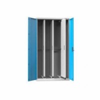 Výsuvné oboustranné perforované panely zajišťují flexibilní uložení předmětů a jsou opatřeny plnovýsuvy s tlumením při zasunutí. Mezery mezi panely jsou 230 mm ve skříni se třemi perfopanely. Nosnost jednoho výsuvného perfopanelu je 75 kg. Perfopanely je vhodné opatřit závěsným programem, jehož jednotlivé prvky si můžete vybrat v naší široké nabídce. Vertikální skříně s výsuvnými perfopanely jsou zajištěny blokací, kdy při vysunutí jednoho perfopanelu zablokuje bezpečnostní mechanismus centrálního zamykacího mechanismu všechny ostatní perfopanely. Brání tak převrácení skříně dopředu.Vertikální skříně s výsuvnými perfopanely, 1044 x 655 x 1950 mm, 3 x panel