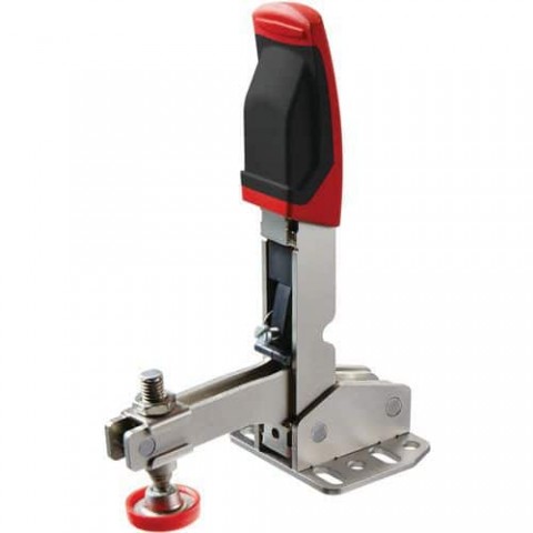 Svislá kloubová svorka s otevřeným ramenem a svislou upínací pákou. Automaticky se nastavuje až na 35 mm bez ztráty tlaku. Sílu lze nastavit až do 2 500 N pomocí šroubového nastavení. Vysoce kvalitní rukojeť z bimateriálu je odolná vůči oleji. Tělo kloubové svorky je vyrobeno z vysoce odolného upraveného plechu.Vertikální upínač Bessey, s vodorovnou upínací deskou, rozsah 40 mm