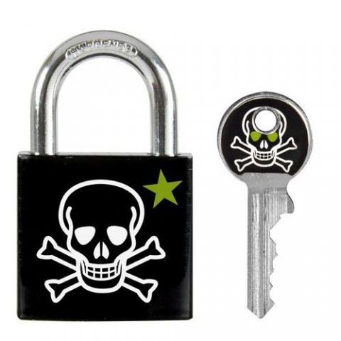 Visací zámek pro všeobecnou ochranu z pevného hliníku o šířce 30 mm. Hliníkové tělo zámku s potahem odolné proti poškození a korozi. Třmen z oceli o průměru 5 mm odolný proti přeřezání. Dostupné ve 4 možných variantách s různými potisky. Černá barva s motivem "Skull". Bezpečnostní třída Master Lock™ 4.Visací zámek Master Lock z pevného hliníku 30mm