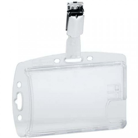 Karta je z obou stran chráněna uzavřeným pevným pouzdrem. Zabraňuje demagnetizaci elektronických čipů a pásků. Kartu lze snadno vyjmout nebo vyměnit díky otvoru na zadní straně. Bezpečnostní zarážka, která udrží kartu na místě a zabrání jejímu posunutí. Dva otvory, takže lze použít na výšku i na šířku.Visačka s klipem na magnetickou kartu