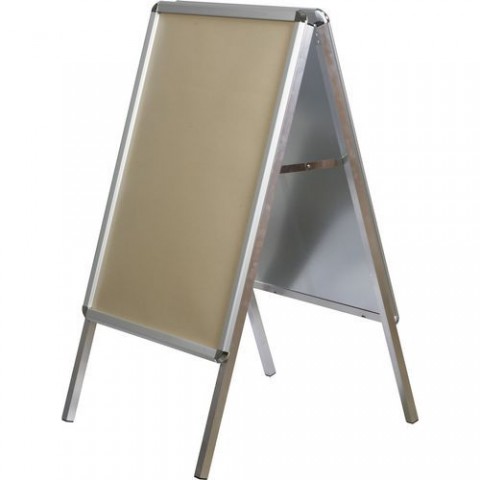 Reklamní áčka s oblými rohy pro oboustranné umístění letáků, reklamních plakátů nebo fotografií. Zvýšená ochrana proti povětrnostním vlivům, stojany lze tak umístit do venkovních prostor. Nerezová plechová záda odolná vůči nárazům, přední kapsa Poster Bag. Dobrou stabilitu zajišťují hliníkové nohy se zkoseným zakončením.Voděodolné áčkové reklamní stojany P32, oblé rohy