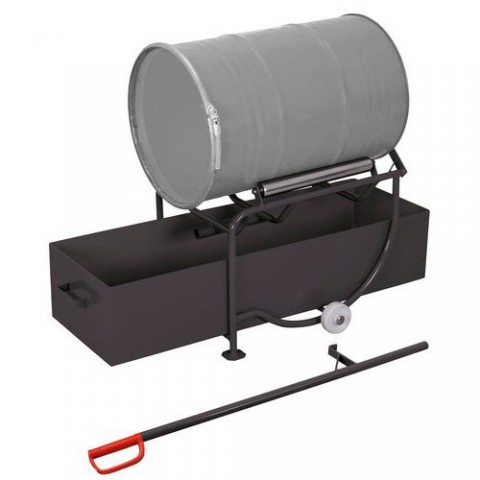Vozík na naklápění sudů se 2 ocelovými válečky pro tenkostěnné sudy. Dodáváno s vypouštěcí vanou o objemu 203 l. Vhodné pro přemísťování a skladování sudu. Páka s plastovou bezpečnostní rukojetí. Polyamidová kola na válečkových ložiskách na jedné nápravě.Vozíky na naklápění sudů s ocelovou vanou, 2 ocelové válečky, 200 l, do 250 kg