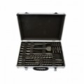 Box s velkým množstvím vrtáků a bitů určených na dřevo, kov a beton. Celkem je v sadě obsaženo 330 kusů nářadí. 66 vrtáků na kov. 33 vrtáků na dřevo. 24 vrtáků na beton. 50 vrtáků na bázi titanu. 88 chróm-vanadových bitů. 10 zástrčných klíčů. 4 frézky pro děrování otvorů. 4 úderníky. 4 hlavice pro vrtáky. 3 šroubováky z plastu. 1 šestihranný klíč se šestihrannou zásuvkou. 1 bitový držák. 1 záhlubník. 1 vrtací šablona. 1 maticový vrtací stroj. 9 plochých vrtáků.Vrtáky a bity sada 300 ks, dřevo/kov/beton, GEKO