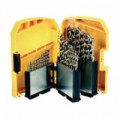 Sada 19 kusů broušených HSS vrtáků do oceli, litiny a hliníku. Vrtáky s válcovou stopkou broušenou z rychlořezné oceli HSS. Robustní profil, vrcholový úhel 118° a úhel šroubovice 30°. Povrch s parní úpravou získaný válcováním za tepla. Méně křehké než broušené vrtáky.Sada vrtáků do kovu Manutan Expert, 19 ks, průměr 1 - 10 mm