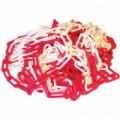 Řetěz pro vymezení nebezpečných oblastí nebo parkovišť. Vyrábí se bezešvým vstřikováním. Vhodný pro použití v interiéru i exteriéru. Řetěz je dodáván v sáčku.Eko plastový řetěz k zahrazovacím sloupkům, bílá/červená, 25 m