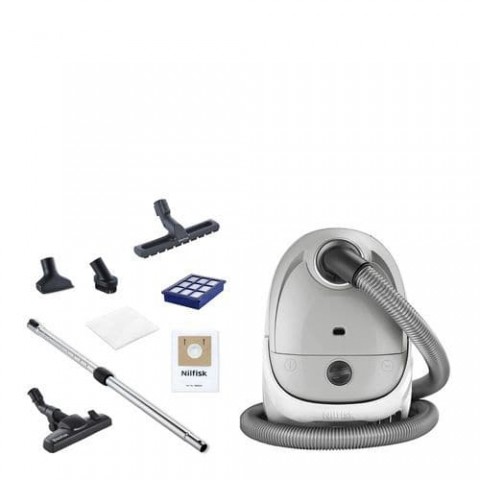 Vysavač Nilfisk One Gray je navržen s ohledem na použití zejména v domácnostech. Energetické třída A při vysávání tvrdých podlah a třída B při vysávání koberců. Snadná manipulace a skladovatelnost díky kompaktnímu provedení a speciálnímu pásku pro uchycení sací hubice kolem těla vysavače. Zabudovaný kvalitní EPA 12 filtr pro filtraci prachových částic. Nastavitelný výkon a indikátor naplnění sáčku.Vysavač Nilfisk One Gray
