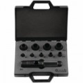 Sada děrovaček pro měkké materiály, pryže, kůže, plsti a pěny, jakož i materiálů vyztužených skelnými vlákny nebo ocelí. Odpor trubek se pohybuje mezi 162 a 180 kg/mm2.Sada průbojníků o 2 - 19 mm Mob