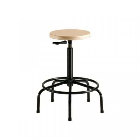 Výškově nastavitelná dřevěná pultová stolička s pevnou opěrkou nohou pro větší pohodlí.Vysoká pracovní stolička s plynovým pístem a opěrným kruhem