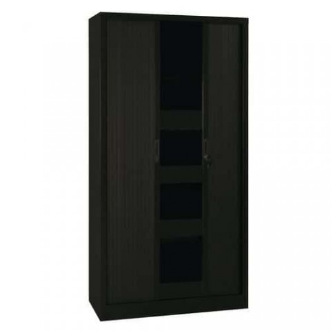 Vysoká roletová skříň nabízí dostatečný prostor pro uložení šanonů a jiných dokumentů v kancelářích. Tiché roletové dveře s magnetickým zavíráním. Vybavená čtyřmi výškově nastavitelnými policemi. Jednoduché sestavení bez nutnosti použití nářadí.Vysoké kovové spisové skříně Manutan Expert s roletou, 198 x 100 x 45 cm