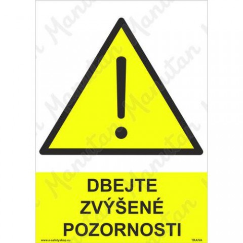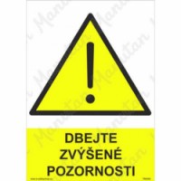 Bezpečnostní značení tabulkou, značkou nebo samolepkou "Dbejte zvýšené pozornosti" tiskneme na vysoce kvalitním materiálu, barvami s vysokou odolností proti otěru a UV záření. Tím zajišťujeme splnění požadavků Nařízení vlády č. 375/2017 Sb., ČSN ISO 3864-1, ČSN ISO 3864-2, ČSN ISO 3864-3, ČSN ISO 3864-4.Výstražné tabulky - Dbejte zvýšené pozornosti