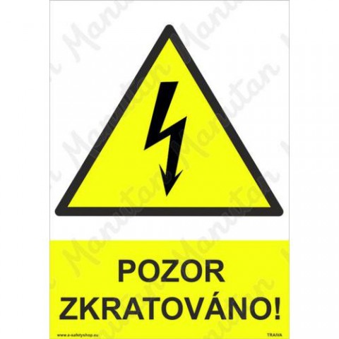Bezpečnostní značení tabulkou, značkou nebo samolepkou "Pozor zkratováno" je tištěno na vysoce kvalitním materiálu, barvami s vysokou odolností proti otěru a UV záření. Tak, aby provedení značení bylo plně v souladu s Nařízením vlády č. 375/2017 Sb., ČSN ISO 3864 a ČSN ISO 3864-1.Výstražné tabulky - Pozor zkratováno
