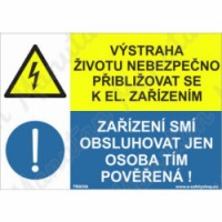Bezpečnostní značení tabulkou, značkou nebo samolepkou "Výstraha životu nebezpečno přibližovat k el. zařízením" tiskneme na vysoce kvalitním materiálu, barvami s vysokou odolností proti otěru a UV záření. Tím zajišťujeme splnění požadavků Nařízení vlády č. 375/2017 Sb., ČSN ISO 3864-1, ČSN ISO 3864-2, ČSN ISO 3864-3, ČSN ISO 3864-4.Výstražné tabulky - Výstraha životu nebezpečno přibližovat se k elektrickým zařízením