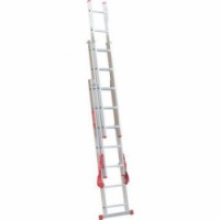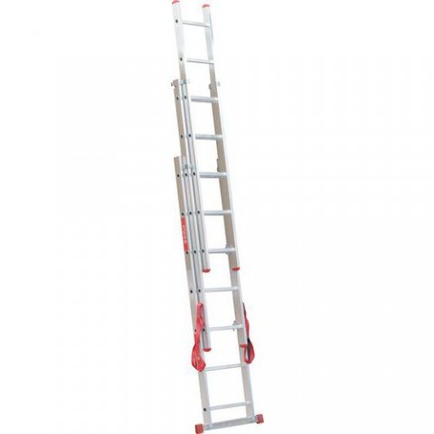 Víceúčelový trojdílný žebřík po sedmi příčkách. Vhodný pro domácí použití. Lze sestavit jako stojací štafle, výsuvný nebo opěrný žebřík. U výsuvného možnost nastavení výšky po jednotlivých příčkách. Opatřen jisticími pásy. Součástí tohoto multifunkčního žebříku jsou protiskluzové patky. Splňuje normu ČSN EN 131 a je opatřen TÜV certifikátem.Výsuvný hliníkový žebřík PRO, 3 x 7 příček, Alpos Alu