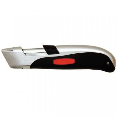 Automatické zatažení čepele, pokud je tlačítko uvolněné nebo pokud není na čepel vyvíjen tlak. Výsuvná 25mm čepel. Nůž s ovládacím knoflíkem pro vertikální a horizontální použití.Výsuvný nůž Mob, 25 mm