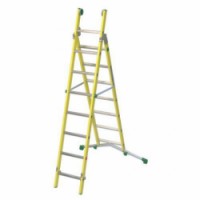 Sklolaminátový žebřík vhodný do provozů s vyšším rizikem elektrických výbojů. Žebřík je certifikovaný, splňuje normu EN 131 a EN 61478 v kategorii I. - 30.000 Voltů. Lze sestavit jako stojací štafle nebo opěrný žebřík. Stabilizační teleskopická základna o šířce 83 až 128 cm, plastové protiskluzové patky. Dvě kolečka ve vrchní části žebříku pro snadnou manipulaci. Příčky o rozměru 30 x 30 mm mají vroubkovaný povrch a jsou v úklonu 68 ° pro pohodlný a bezpečný nášlap. Nosné profily žebříku o rozměru 26 x 68 mm. Šířka prvního dílu žebříku je 50 cm, šířka druhého dílu je 45 cm.Výsuvný sklolaminátový žebřík Facal, 7 + 8 příček