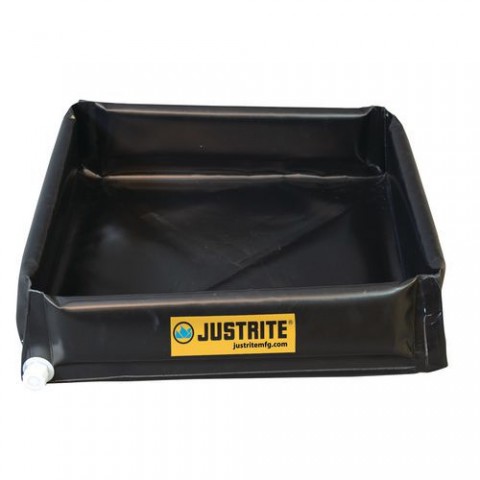 Malá stolní záchytná vanička k mytí nástrojů a součástí. Bezpěčně zachytí úkapy při manipulaci s ropnými produkty a kyselinami. Vyrobeno z odolné tkaniny EnGuard™ V potažené PVC, která poskytuje UV a chemickou odolnost. Pevné rohové podpěry a pěnové bočnice. Výpusť se závitem 1'' umožňuje snadné vypuštění obsahu. Snadné skládání a skladování.Záchytné nádrže Justrite MINI-BERM, černé, 114 - 208 l