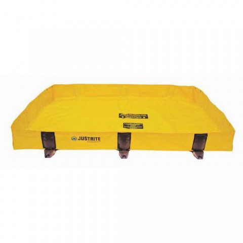 Skládací záchytné vany vhodné pro občasné použití a menší aplikace jako např. pár sudů, baterií, dekontaminace osob nebo rezrevní vana pro případ menší úniku kapalin. Odolné vůči UV záření, olejům, tukům a kyselinám. Přenosné a velmi rychle použitelné ve vnitřním i vnějším prostředí. Nájezd a výjezd z vany sklopnými bočními stěnami s nosností až 5 tun na jednu pneumatiku. Vzpěry stěn Rigid-Lock z nerezové oceli včetně zámků zajišťujících stěny v poloze 90° a plné využití vnitřního prostoru. Vyztužené rohy pro vyšší stabilitu a mosazná očka pro pevné uchycení nádrží. Odolná tkanina EnGuard ™ I potažená PVC je odolná vůči UV záření a chemicky odolná. Vyztužené rohy pro vyšší stabilitu a mosazná očka pro pevné uchycení nádrží.Záchytné nádrže Justrite RIGID-LOCK QUICKBERM®, žluté, 299 - 451 l