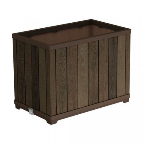 Květináč v dezénu vlašského ořechu je moderním a stylovým doplňkem pro Vaši zahradu či interiér. Vyroben je z pevnéhé plastu v dokonalé imitaci dřeva. Integrovaný inteligentní zavlažovací systém zajišťuje optimální hydrataci pro rostliny. Praktický odtokový kelímek indikuje hladinu vody, což usnadňuje péči o rostliny a snižuje potřebu časté zálivky. Bezúdržbový a odolný povrch je odolný vůči všem povětrnostním vlivům.Zahradní květináč Deco Rectangle Tall, 55 x 76 x 45,5 cm, tmavě hnědý
