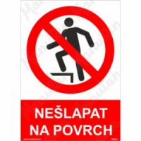 Bezpečnostní značení tabulkou, značkou nebo samolepkou "Nešlapat na povrch" je tištěno na vysoce kvalitním materiálu, barvami s vysokou odolností proti otěru a UV záření. Tak, aby provedení značení bylo plně v souladu s Nařízením vlády č. 375/2017 Sb., ČSN ISO 3864 a ČSN ISO 3864-1. Používá se k označení povrchů, kam je z bezpečnostních důvodů zakázano šlapat.Zákazové tabulky - Nešlapat na povrch