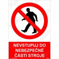 Bezpečnostní značení tabulkou, značkou nebo samolepkou "Nevstupuj do nebezpečné části stroje" je tištěno na vysoce kvalitním materiálu, barvami s vysokou odolností proti otěru a UV záření. Provedení je plně v souladu s požadavky právních a technických předpisů, zejména Nařízení vlády č. 375/2017 Sb., ČSN ISO 3864-1, ČSN ISO 3864-2, ČSN ISO 3864-3, ČSN ISO 3864-4. Používá se k označení nebezpečných částí stroje, kam je z bezpečnostních důvodů zakázáno vstupovat.Zákazové tabulky - Nevstupuj do nebezpečné části stroje