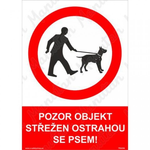 Tabulky, značky a samolepky "Pozor objekt střežen ostrahou se psem" jsou tištěny na vysoce kvalitním materiálu, barvami s vysokou odolností proti otěru a UV záření. Provedení je plně v souladu s požadavky právních a technických předpisů, zejména Nařízení vlády č. 375/2017 Sb., ČSN ISO 3864-1, ČSN ISO 3864-2, ČSN ISO 3864-3, ČSN ISO 3864-4. Používá se k označení míst a objektů, které jsou střeženy ostrahou se psem.Zákazové tabulky - Pozor objekt střežen ostrahou se psem