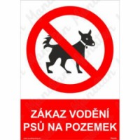 Bezpečnostní značení tabulkou, značkou nebo samolepkou "Zákaz vodění psů na pozemek" je tištěno na vysoce kvalitním materiálu, barvami s vysokou odolností proti otěru a UV záření. Tak, aby provedení značení bylo plně v souladu s Nařízením vlády č. 375/2017 Sb., ČSN ISO 3864 a ČSN ISO 3864-1. Používá se k označení pozemku, kam je zákaz vodění psů.Zákazové tabulky - Zákaz vodění psů na pozemek