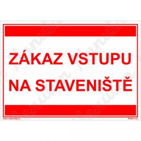 Bezpečnostní značení tabulkou, značkou nebo samolepkou "Zákaz vstupu na staveniště" je tištěno na vysoce kvalitním materiálu, barvami s vysokou odolností proti otěru a UV záření. Provedení je plně v souladu s požadavky právních a technických předpisů, zejména Nařízení vlády č. 375/2017 Sb., ČSN ISO 3864-1, ČSN ISO 3864-2, ČSN ISO 3864-3, ČSN ISO 3864-4. Používá se k označení staveniště, na které je z bezpečnostních důvodů vstup zakázán. KW: Vstup na staveniště zakázánZákazové tabulky - Zákaz vstupu na staveniště