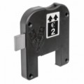 Zásobník na mince a žetony pro suché prostředí, s vyměnitelným válcem. Standardní verze růžice. Pravostranný zámek, vhodný pro pravé dveře s panty. Přijímá mince a žetony o průměru 20 a 30 mm a maximální tloušťce 3,2 mm.Zámek na mince a žetony o průměru 20 mm a 30 mm a max. tloušťce 3,2 mm