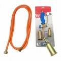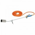 Hořák na plyn s dlouhou rukojetí. Plynulé nastavení plamene regulačním ventilem na rukojeti. Maximální tlak plynu 2,5 bar. Vhodné pro pokrývače, k opalování plevelů apod.Plynový opalovací hořák 60 mm, 1800 °C, 5 m hadice 3/8''