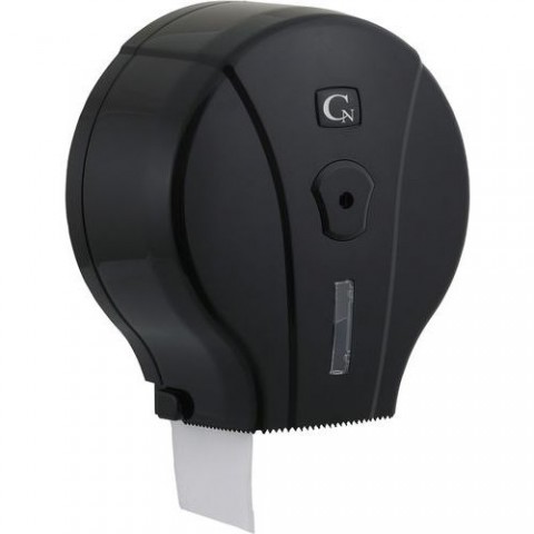 Plastový zásobník toaletního papíru v rolích. Maximální průměr role je 20 cm a šířka 10 cm. Průhledné okénko pro sledování stavu zásoby papíru. Vyrobený z ABS plastu. Montáž pomocí šroubků nebo lepicí pásky.Zásobníky na toaletní papír v rolích CN Jumbo