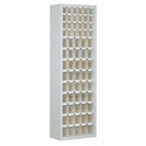 Úložná skříňka pro přehledné uložení předmětů a ochranu před prachem. Snadno vyjměte průhledné výklopné koše z ocelové skříně. Robustní výklopné zásobníky jsou odolné vůči oleji a palivu. Je vybaven úchyty a držáky štítků. Sada vytvořená s různými policemi Stala.Zásuvkové skříně Stala