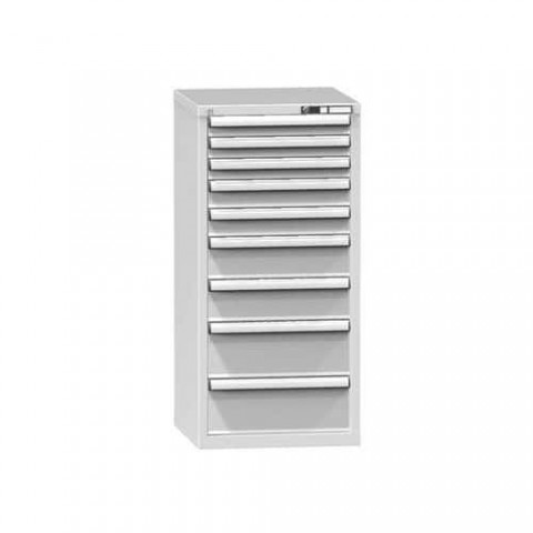 Zásuvková skříň je opatřená mechanismem centrálního zamykání a blokace zásuvek. Zásuvky jsou základním skladovacím prvkem, a proto splňují vysoké požadavky na pevnost a stabilitu. Korpusy zásuvkových skříní tvoří svařenec jednotlivých konstrukčních dílů z kvalitních ocelových plechů. Vnitřní konstrukce korpusů je opatřena perforací po 25 mm. Tuto perforaci využíváme k uchycení vodicích lišt zásuvek, jejich výškovému uspořádání a nakonfigurování požadované zásuvkové sestavy. Přestavování vodicích lišt nebo háčků polic probíhá jednoduše a velice rychle bez použití nástrojů.Zásuvkové skříně ZA4, 578 x 600 x 1215 mm