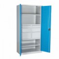 Zásuvková skříň je opatřená mechanismem centrálního zamykání a blokace zásuvek. Zásuvky jsou základním skladovacím prvkem, a proto splňují vysoké požadavky na pevnost a stabilitu. Korpusy zásuvkových skříní tvoří svařenec jednotlivých konstrukčních dílů z kvalitních ocelových plechů. Vnitřní konstrukce korpusů je opatřena perforací po 25 mm. Tuto perforaci využíváme k uchycení vodicích lišt zásuvek, jejich výškovému uspořádání a nakonfigurování požadované zásuvkové sestavy. Přestavování vodicích lišt nebo háčků polic probíhá jednoduše a velice rychle bez použití nástrojů.Zásuvkové skříně ZH5, 442 x 753 x 990 mm
