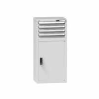 Zásuvková skříň je opatřená mechanismem centrálního zamykání a blokace zásuvek. Zásuvky jsou základním skladovacím prvkem, a proto splňují vysoké požadavky na pevnost a stabilitu. Korpusy zásuvkových skříní tvoří svařenec jednotlivých konstrukčních dílů z kvalitních ocelových plechů. Vnitřní konstrukce korpusů je opatřena perforací po 25 mm. Tuto perforaci využíváme k uchycení vodicích lišt zásuvek, jejich výškovému uspořádání a nakonfigurování požadované zásuvkové sestavy. Přestavování vodicích lišt nebo háčků polic probíhá jednoduše a velice rychle bez použití nástrojů.Zásuvkové skříně ZN1, 578 x 464 x 1215 mm