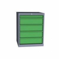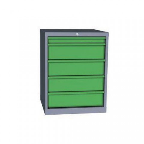 Dílenská skříň s pěti zásuvkami je vybavena cylindrickým zámkem a systémem blokace proti vysunutí více zásuvek najednou. Skříň na nářadí je vhodná především do výrobních prostor, opraven či speciálních školních zařízení. rozměry v x š x h: 81 x 62 x 60 cm výška zásuvky: 1 x 6; 4 x 15 cm nosnost: 300 kg nosnost zásuvky: 40 kg počet zásuvek: 5 ks výsuv zásuvek: 100 % materiál: ocelový plech tl. 1 mm barva: šedá RAL 7031 barva zásuvek: zelená RAL 6001 hmotnost: 58,2 kg povrchová úprava práškovým lakem, možnost uzamčení - cylindrický zámek, zkompletovánoZásuvkový kontejner, 81 x 62 x 60 cm, 5 zásuvek