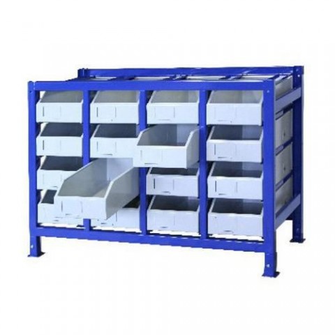 Zásuvkový regál s šestnácti zásuvkami z ocelového plechu. Nosná konstrukce je vyrobena z ocelových profilů. Tento stavebnicový regál s povrchovou úpravou práškovým lakem je vhodný na skladování drobnějšího materiálu, nářadí i nástrojů.Zásuvkový regál s 16 šuplíky