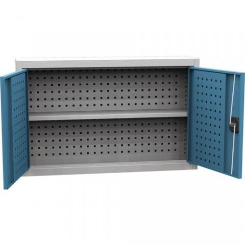 Závěsná skříňka je určena pro přehledné uložení a jednoduchou dostupnost nářadí. Zadní stěna i vnitřní strana dvířek jsou perforovány pro připevnění držáků na nářadí. Skříňka je vybavena jednou výškově nastavitelnou policí. Dvířka lze zamykat cylindrickým zámkem.Závěsná skříňka na nářadí, 60 x 95 x 20 cm
