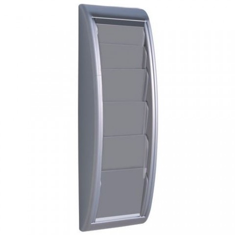 Nástěnný držák na letáky a dokumenty s pěti přihrádkami. Přihrádky mají hloubku 2 cm a průhledné sklo je vorobené z krystalového polystyrenu. Barevný korpus vyrobený z polystyrenu. Připevnění na stěnu pomocí šroubů. Dodáváno ve smontovaném stavu.Závěsné držáky na prospekty Paperflow QuickFit, 5 přihrádek
