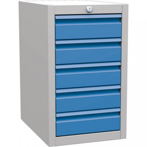 Závěsný kontejner s pěti zásuvkami zabezpečíte pomocí cylindrického zámku s centrálním uzamykacím mechanismem. Zásuvkový kontejner lze připevnit k pracovnímu stolu vpravo, nebo vlevo pod pracovní plochu. Zásuvky jsou vybaveny 75% kuličkovými výsuvy.Závěsné kontejnery, 60 x 36 x 50 cm, 5 zásuvek