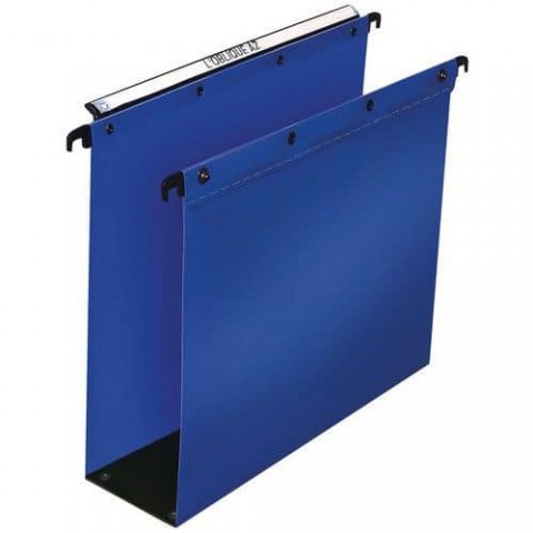 Závěsný pořadač se širokou základnou pro velké množství dokumentů. Praktický systém přítlačných čepů: vaše složky zůstanou na svém místě. Snadno se hledá a je efektivní díky barvě a držáku na štítky.Závěsné složky Elba Oblique, 10 ks