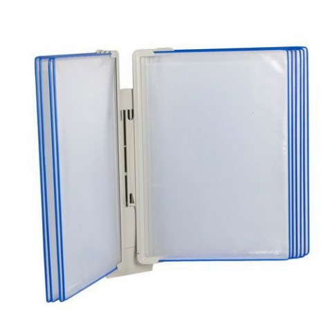 Nástěnný držák s informačními tabulkami pro zveřejnění důležitých informací na jedno místo. Vyroben z plastu v šedém provedení, kapsy z polypropylenu.Závěsný držák Tarifold Barcelona s rámečky