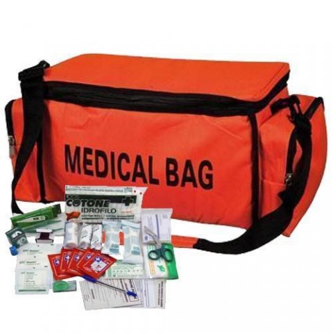 Oranžová zdravotnická brašna první pomoci v terénu. Vhodná především pro sportovní kluby a areály, cestovní kanceláře, rekreační střediska a školy v přírodě. Tašku tvoří 2 boční kapsy na zip, 1 hlavní kapsa s možností variabilního rozdělení přepážek a kapsiček na suchý zip, průhledné kapsy a gumová poutka na víku. Je opatřena popruhem k nošení přes rameno.Zdravotnická brašna první pomoci s náplní KANCELÁŘ