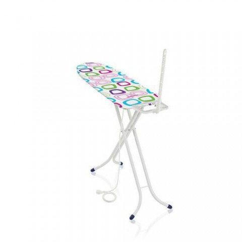Žehlicí plocha M : 120 x 38 cm, plynule nastavitelná výška až do 95 cm, nastavitelné pro každou tělesnou výšku, pevná odkládací plocha pro žehličku s vodící anténou na kabel a německou elektronickou zásuvkou s prodlužovačkou, ideální pro středně velké domácnosti, kompaktní pro snadné skladováníŽehlicí prkno Classic M Compact Plus