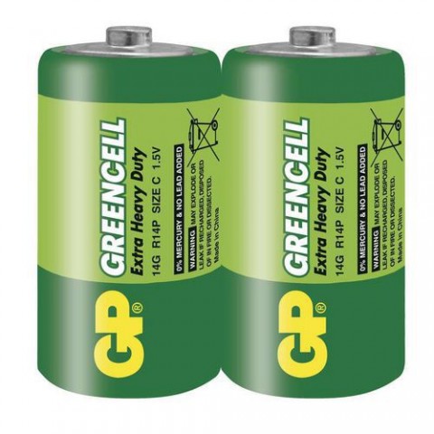 Zinkochloridové baterie, které jsou ekonomickým zdrojem elektrické energie vhodným pro energeticky nenáročná zařízení. Výkonnost těchto baterií nejlépe vynikne při použití v přístrojích s malým až středním odběrem proudu jako např.: dálkové ovladače, hodiny, budíky, kalkulátory, meteostanice, bezdrátová čidla či svítilny. Jejich doba skladování je až 3 roky a pracovní teplota 0 °C až +45 °C. kategorie/řada: Greencell napětí: 1,5 V rozměr: 26,2 × 50,0 mm prodejní obal: 2 ks, fólie chemické složení: zink - chloridové cena za množství: cena za 2 ks typové označení: R14 (malé mono, C)Zinkochloridová baterie GP Greencell R14 (C) fólie