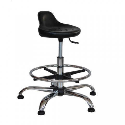 Laboratorní židle Vanig je složena z omyvatelného sedátka a ocelového kříže, který zajišťuje dobrou stabilitu a estetický vzhled stoličky. Nastavitelná kruhová opěrka zajišťuje komfortní posed uživatele. Materiál laboratorní stoličky je odolný vůči olejům, prachu i mechanickému poškození. Vhodný především pro dílenské či laboratorní použití. Stavitelná výška sedáku je zabezpečena plynovým pístem. barva sedáku: černá barva konstrukce: chrom materiál sedáku: polyuretanová pěna materiál kříže: chromovaná ocel mechanika: synchronní nosnost: 100 kg rozměry sedáku š x h: 35 x 35 cm výška sedáku: 49 - 68 cm opěrka nohou: ano typ opěrky nohou: výškově nastavitelné dodáváno v rozloženém stavu, plynový pístZvýšená laboratorní stolička Vanig